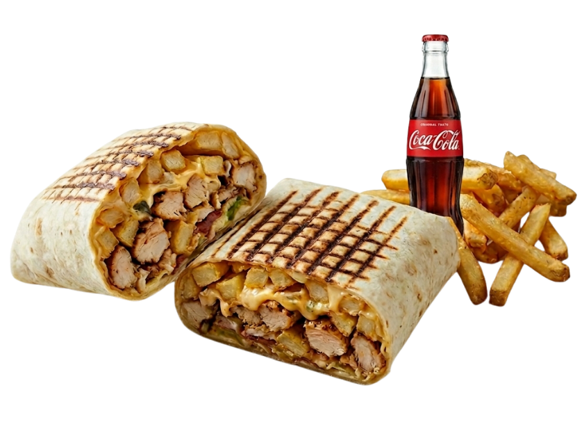 10 alette di pollo piccante, 6 pezzi di pollo grandi, 4 porzioni di patatine fritte e bibita da 1,5L. Perfetto per chi ama il pollo con carattere!